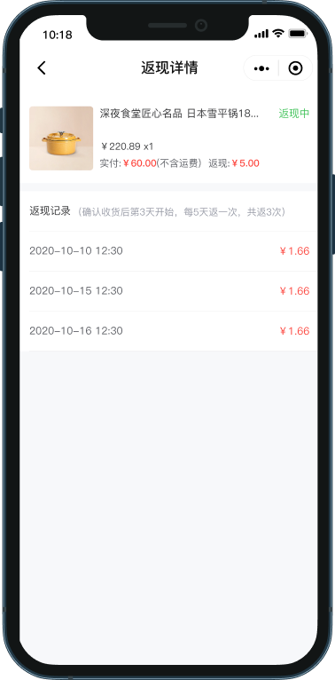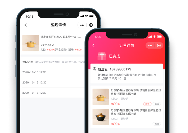 用户下单即可获得现金返利,比折扣优惠更新颖的营销方式,让购物充满惊喜,提升顾客的消费意愿,吸引顾客快速成交。